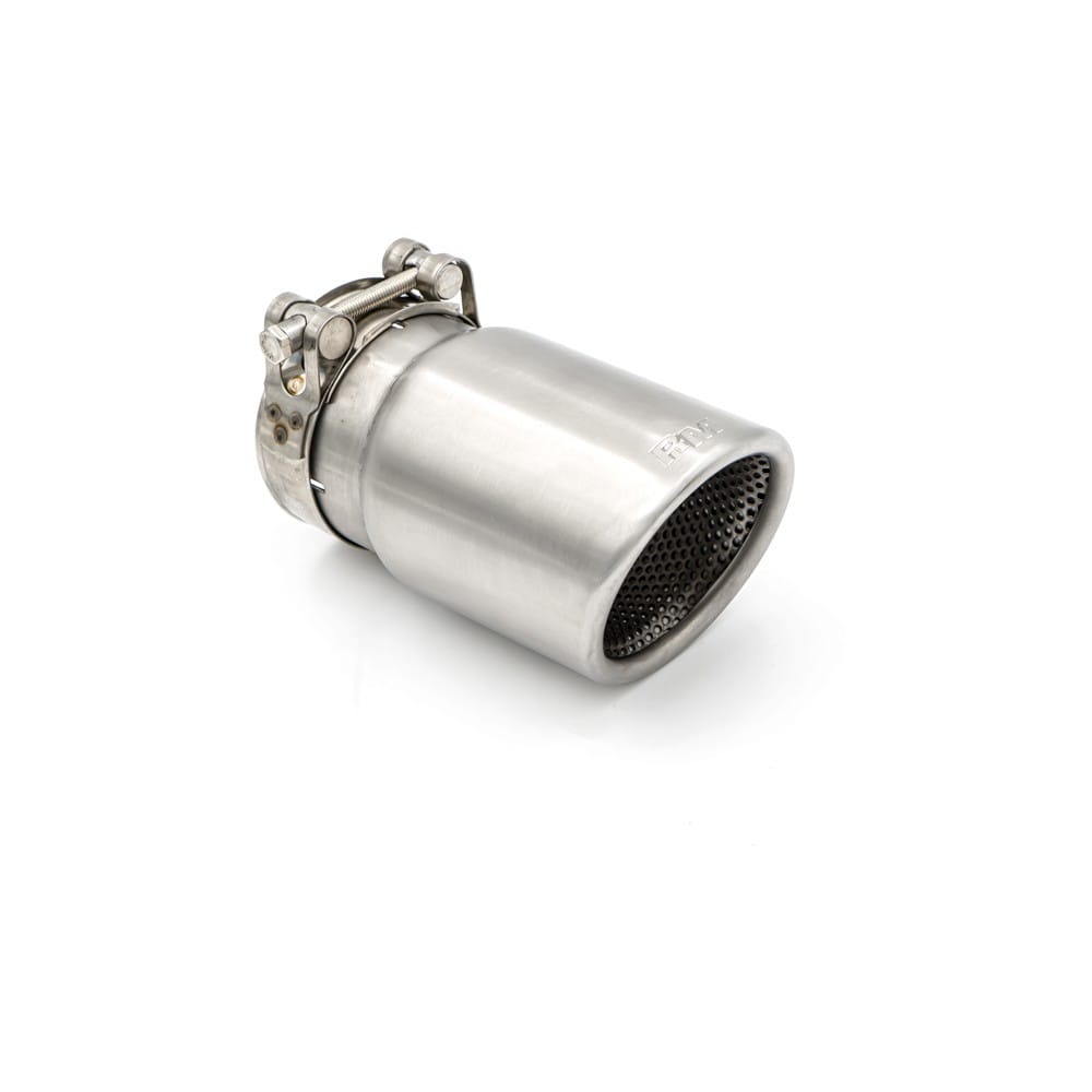 Satin stainless steel slanted exhaust tip without a clamp with a diffuser.