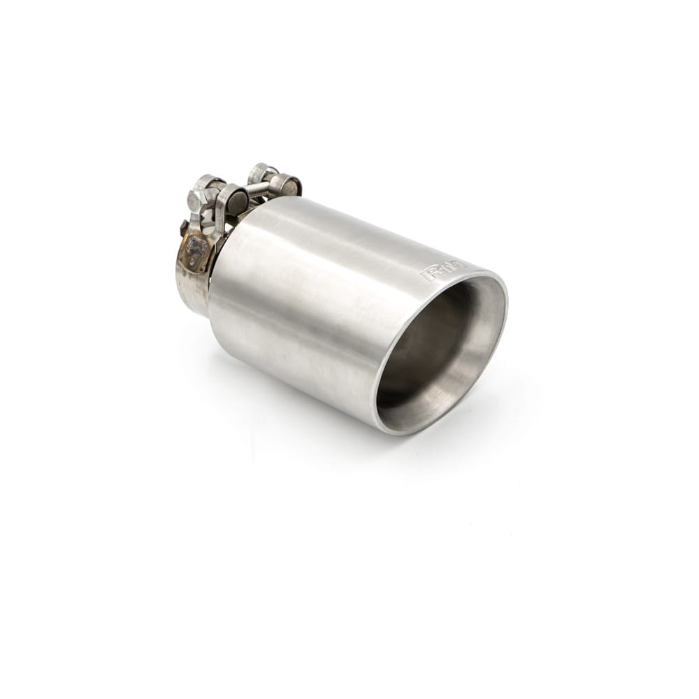Satin stainless steel slanted exhaust tip without a clamp with a diffuser.
